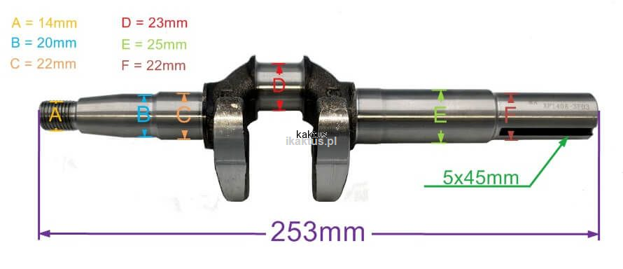 WAŁ KORBOWY 22MM ZONGSHEN XP140 4,5HP